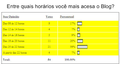 Leia atentamente a tabela que apresentamos com o resultado da enquete realizada durante aproximadamente 30 dias.