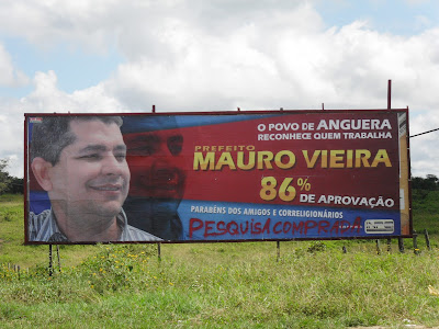 Na manhã desta segunda-feira, 27 de junho, amanheceram pinchadas três peças de outdoor que divulgavam o resultado da pesquisa que apontou 86% de aprovação da administração municipal de Anguera.A atitude de violação foi praticada por anônimos, contra um outdoor instalado no Contorno de Bonfim de Feira e outros dois instalados nas proximidades do Rio Jacuípe.As peças de divulgação haviam sido divulgadas por amigos e correligionários do Prefeito Mauro Vieira, como forma de parabenizá-lo pela aprovação popular e estimulá-lo a cada vez mais trabalhar pelo progresso de Anguera.