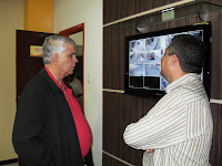 Já no seu gabinete, ainda nos últimos retoques da reforma, o Prefeito Mauro Vieira explicava ao deputado Araújo o sistema de circuito de TV que será implantando na Praça Arthur Vieira no salão de festas do São João 2011. O prefeito Mauro Vieira e o Dep. Federal José Carlos Araujo estiveram acompanhados com suas respectivas esposas.