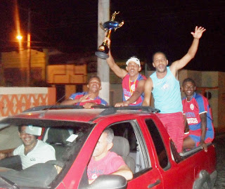 O Capitão do time Cleber, celebrou o triunfo erguendo e mostrando a taça após entrar em carreata pela cidade.