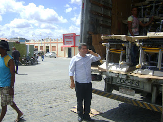 O Prefeito Mauro Vieira recebendo os novos conjuntos mesas e cadeiras escolares