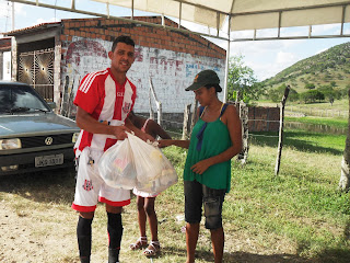 Entrega sendo feita pelo Jogador Cleber (Copacabana) a uma família carente |