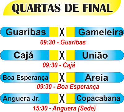 A Copa Anguerense de Futebol 2011 está chegando a sua fase final. No próximo domingo (27/11) acontecem as partidas equivalentes as QUARTAS DE FINAL, fase de “mata-mata” que no elimina 04 times e 04 seguem para a próxima fase.