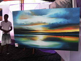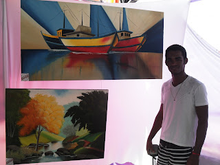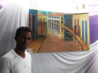 Sob uma lona preta, modelo tradicional, esticada a certa altura, numa vaga deixada entre dois toldos, ele apresentou ao público diversas pinturas em quadros de armações que chamaram a atenção de muitos apreciadores.