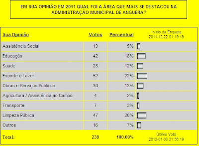 Os internautas escolheram através de enquete, qual foi a área que mais se destacou na administração pública de Anguera em 2011.