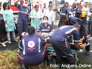 Logo, sabendo do acidente, as ambulâncias do Município de Anguera e enfermeiros se deslocaram para o local onde prestaram os primeiros socorros.