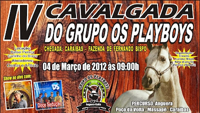Acontece no próximo dia 04 DE MARÇO (domingo) a IV CAVALGADA DO GRUPO OS PLAYBOYS.