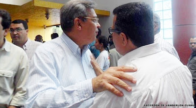 Fotografia postada no facebook, mostrando o momento em que o ex-prefeito de Anguera José Augusto cumprimenta o Deputado Targino Machado |