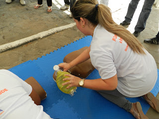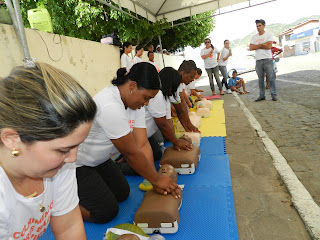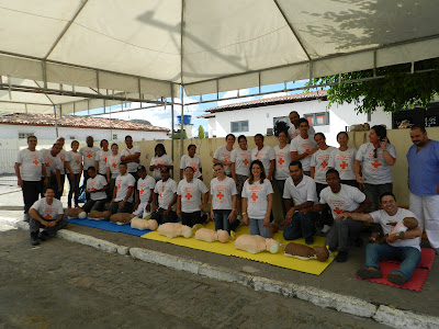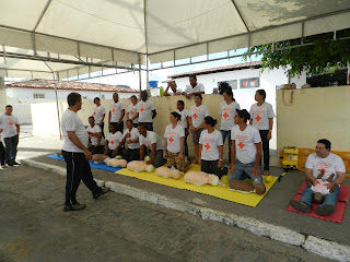 Como pode ser visto nas imagens, todos os participantes tiveram a oportunidade de praticar as manobras de RCP e fazer abordagem ao paciente em casos de acidente automobilístico. Treinando em modelos de borracha vindos dos Estados Unidos.