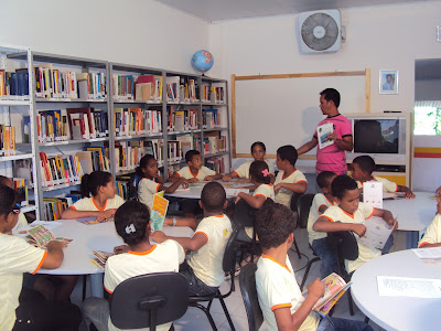 Estudantes em atividade na Biblioteca Pública Municipal, que funcona de forma intensiva, com diversas atividades, há 02 anos |