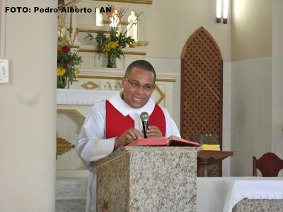 Padre Edson Porcino, durante a celebração em Ação de Graças aos agricultores, na tarde desta quarta-feira |