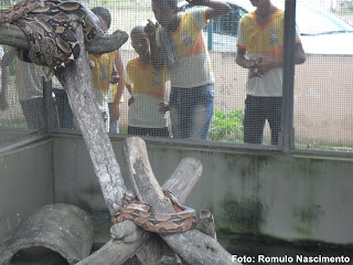 Uma das atrações foi a gaiola de serpentes |