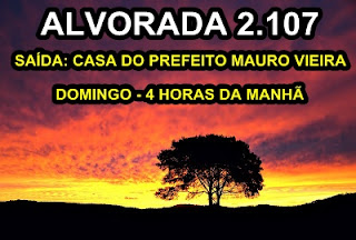 O início da ALVORADA 2.107 está marcado para as 4 horas da madrugada, com saída em frente a casa do Prefeito Mauro Vieira.