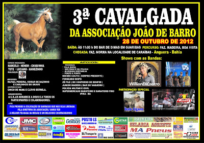 No próximo domingo (28/10) Anguera e região será movimentada com a realização da 3ª edição da Cavalgada da Associação Comunitária Rural João de Barro. A festa promete grande participação popular.