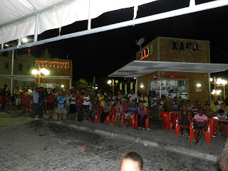 A frente da escola está o Professor João Regis que muito feliz agradeceu ao Prefeito Mauro Vieira pelo apoio ao evento e a todos que lotaram a Praça Artur Vieira.