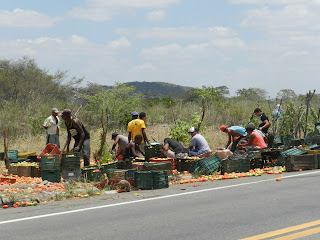A vítima transportava uma carga de tomate, que ficou espalhada no local do acidente.