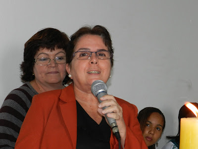 A evangélica Maria Luíza Carneiro, que deixou a cidade de salvador para abraçar D. Olga em sua homenagem cantou uma linda melodia do Cantor Cristão.