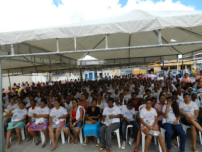 Secretaria Municipal de Saúde realizou nesta sexta (05/04) o 4º encontro de mulheres na Praça Artur Vieira. O evento começou por volta das 8 horas da manha que contou com varias apresentações estendendo-se até o meio dia. Como nas edições anteriores a participação das mulheres foi em grande número, mostrando que, o que dá certo tem que continuar. O prefeito Mauro Vieira esteve presente ao evento assim como os vereadores Carlinhos, Milton de Guaribas, Reginaldo Figueiredo e José Luiz Couto. Após a festa na praça, como nas edições anteriores as mulheres puderam participar de vários serviços, principalmente testes de combate ao câncer de mama. Todos os médicos e enfermeiros participaram do mutirão contra ao câncer de mama. A Secretária Municipal de Saúde Drª Mirian Caldas feliz pela participação de mais de 1.200 mulheres agradeceu a todas que estiveram presente ao evento.