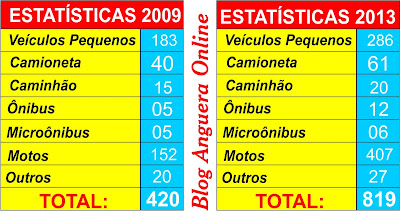 Os números mostram que o grande desenvolvimento visto em Anguera, favoreceu no aumento da frota, fazendo os números aparecerem em dobro no ano de 2013.