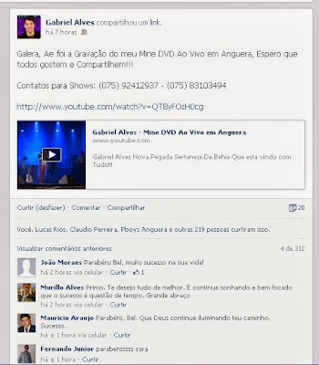 O Cantor Gabriel Alves, artista da terra, postou em sua página no facebook um mine DVD gravado na V Cavalgada do Grupo os Playboys, realizada no ultimo dia 06 de outubro.