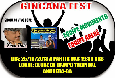 Ainda em clima de Gincana e festa, as equipes Movimento e Arerê prometem comemorar muito com uma festa na próxima sexta-feira, no Clube de Campo Tropical, a partir das 21 horas.