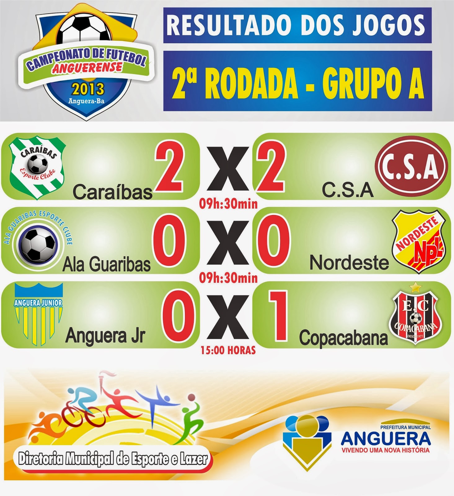 Ontem aconteceu a 2ª Rodada do Campeonato Anguerense de Futebol, sendo realizada 05 partidas, pois a partida entre União x Areia foi antecipada e aconteceu no sábado.